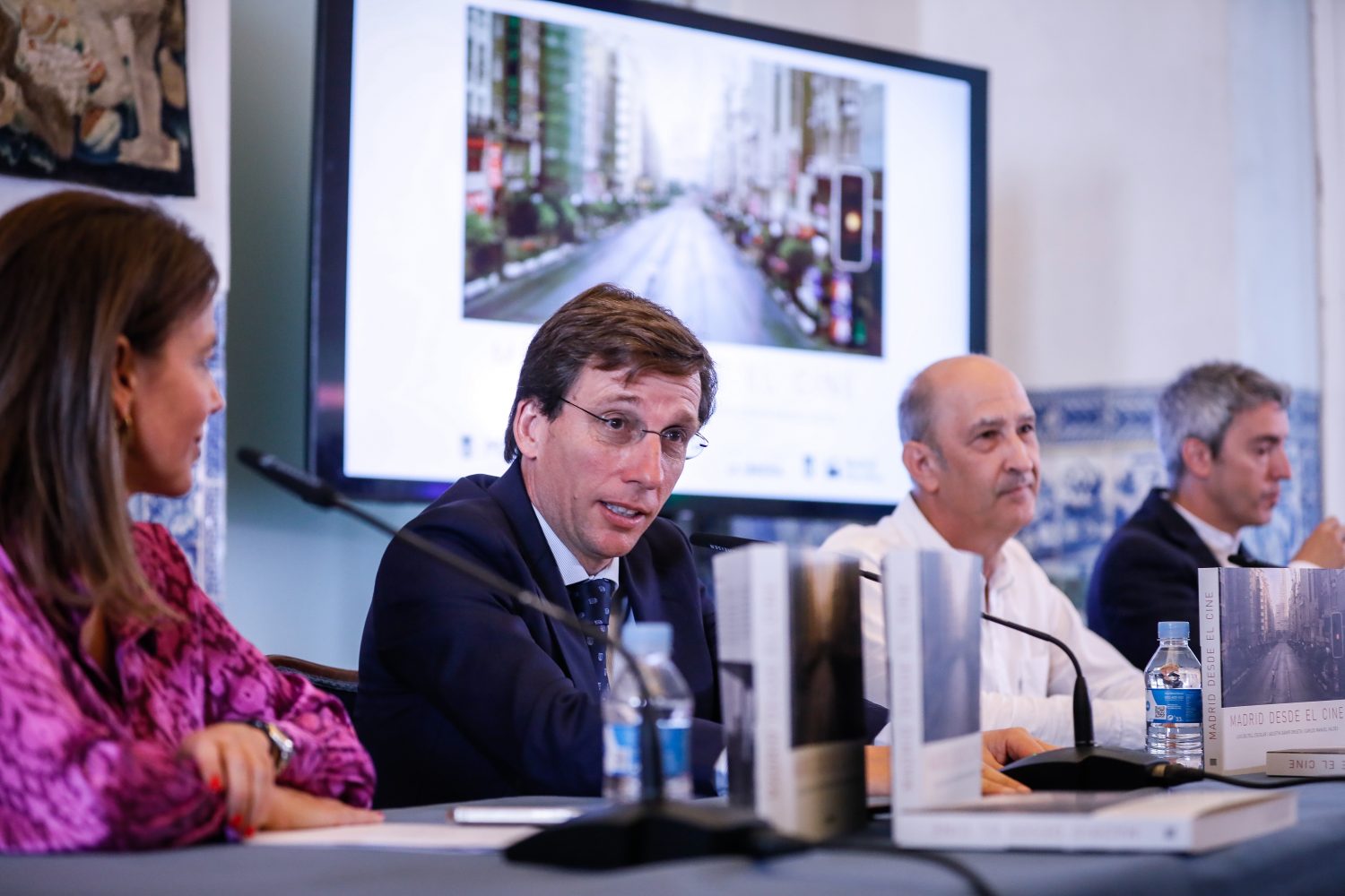 El alcalde de Madrid, José Luis Martínez-Almeida, acompañado por la concejala delegada de Turismo, Almudena Maíllo, ha participado hoy en la presentación de Madrid desde el cine, “un libro extraordinariamente recomendable tanto para los amantes de Madrid como para los amantes del cine”, según ha explicado, que recorre las “diferentes películas que se han rodado en el último siglo en la ciudad de Madrid y que alcanzan a los 21 distritos de la capital”.