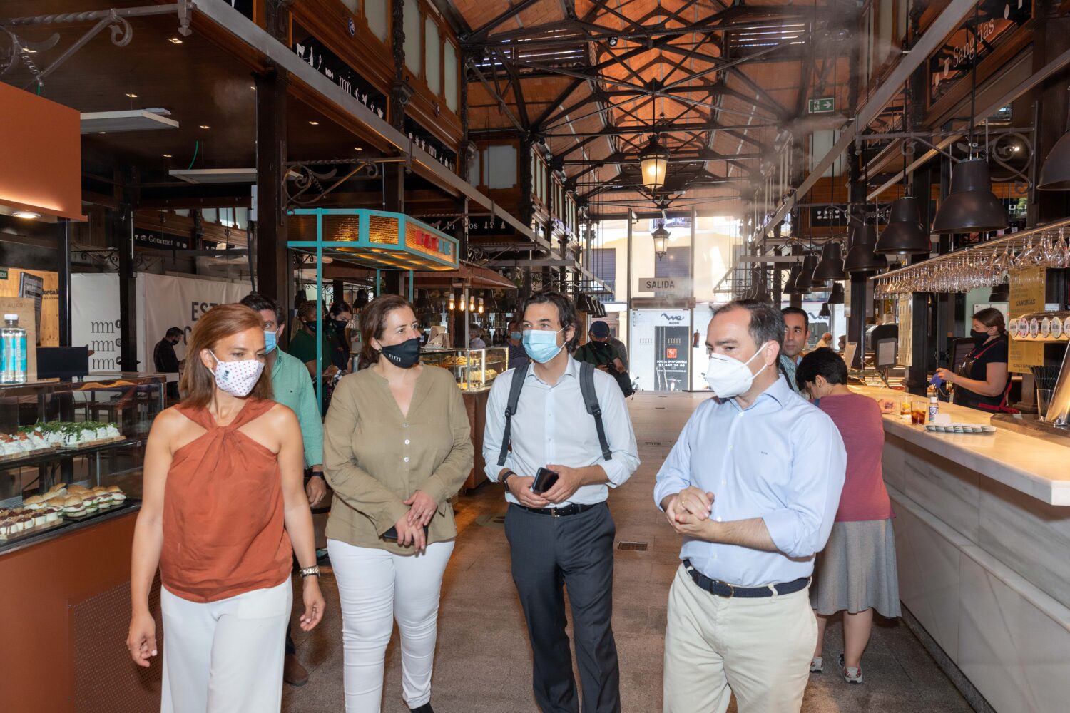 La concejala delegada de Turismo del Ayuntamiento de Madrid, Almudena Maíllo, ha visitado esta mañana el Mercado de San Miguel, que abre de nuevo sus puertas para continuar ofreciendo a ciudadanos y visitantes una de las mejores propuestas gastronómicas de la capital. En su recorrido, ha estado acompañada por el director general de Redevco (empresa propietaria del mercado), Israel Casanova; y la directora del Mercado de San Miguel, Sandra Acevedo.