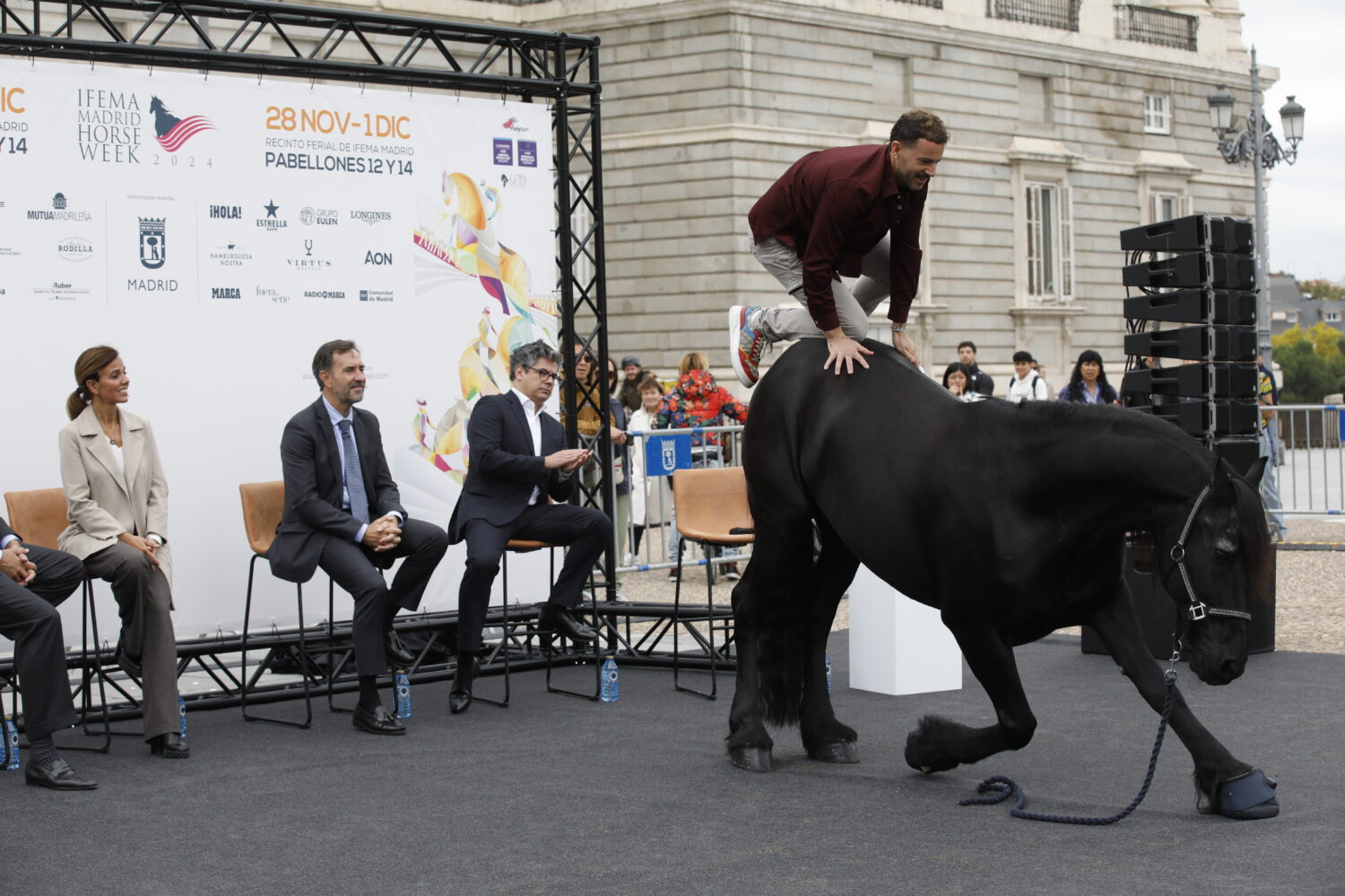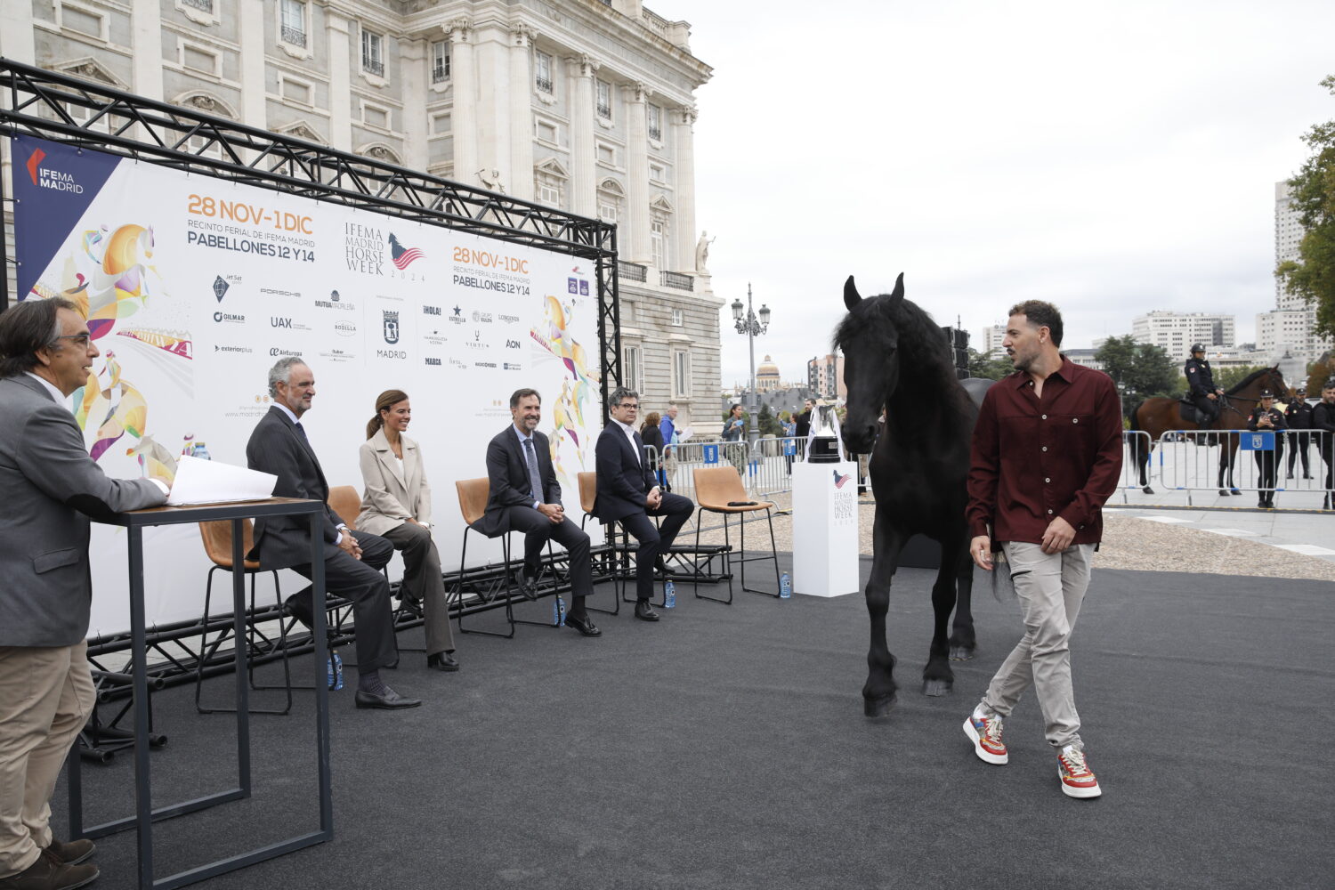 La concejala delegada de Turismo, Almudena Maíllo, acompañada por la concejala delegada de Deporte, Socia Cea, ha participado hoy, en la explanada del Teatro Real, en el acto de presentación de la nueva edición de IFEMA Madrid Horse Week, el mayor evento hípico de España que se celebrará entre el 28 de noviembre y el 1 de diciembre en la capital, con la colaboración del Ayuntamiento de Madrid. Maíllo ha destacado la importancia de esta cita a nivel turístico y económico para la ciudad, convirtiéndose en un reclamo para madrileños y turistas nacionales e internacionales amantes de los caballos.