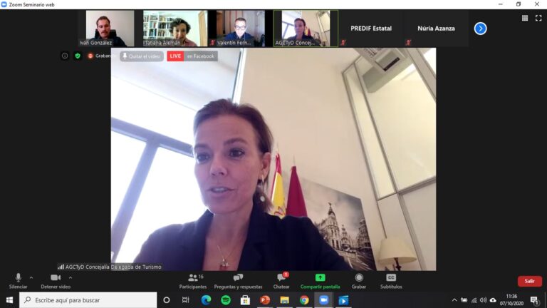 En el seminario, que se ha realizado de manera virtual, se ha dado a conocer la oferta turística de Madrid en cifras, entre las que destaca la existencia de 1.486 monumentos, 83.164 plazas hoteleras, 46.267 comercios, 16 espacios gastronómicos, 17 restaurantes con estrella Michelín, 12 restaurantes centenarios, 68 museos, 54 teatros y otros aspectos como la presencia en la ciudad de 189 parques y jardines (11 de ellos catalogados como históricos o singulares), más de 6.000 hectáreas de zonas verdes, 65 kilómetros de carril bici y 2.710 horas de sol al año.
